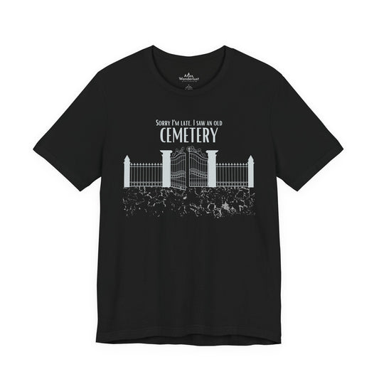 Cemetery Tee, Sorry I am Late. I saw a Cemetery Unisex Taphaphile T-Shirt