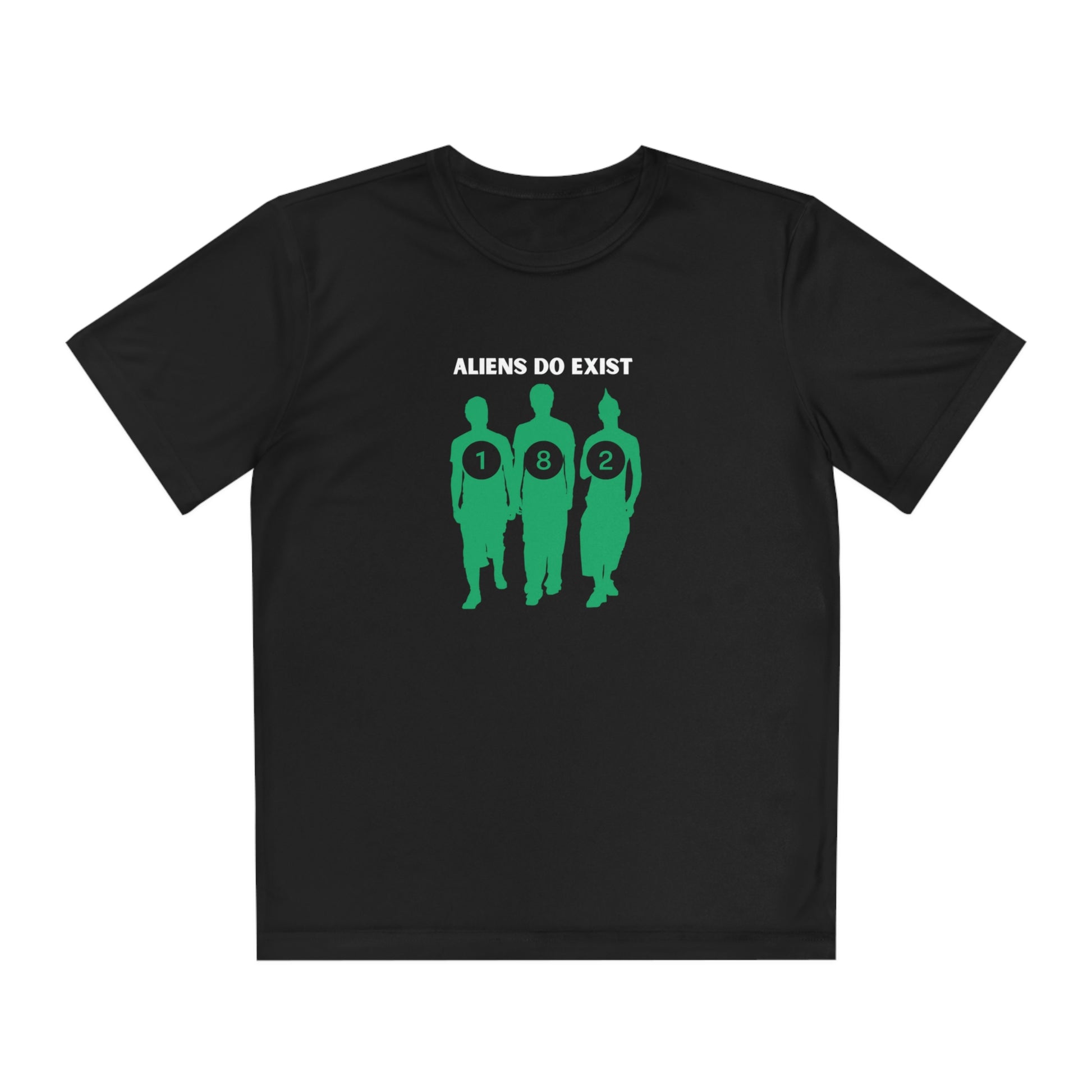 This Blink 182 black t-shirt in youth size is the perfect choice for young fans who know "Aliens Exist"! Made from 100% lightweight polyester, it offers a comfortable and breathable fit for active kids. With its sleek black color and eye-catching "alien" graphics of Mark, Tom, and Travis, this t-shirt is a stylish addition to any young music lover's wardrobe.