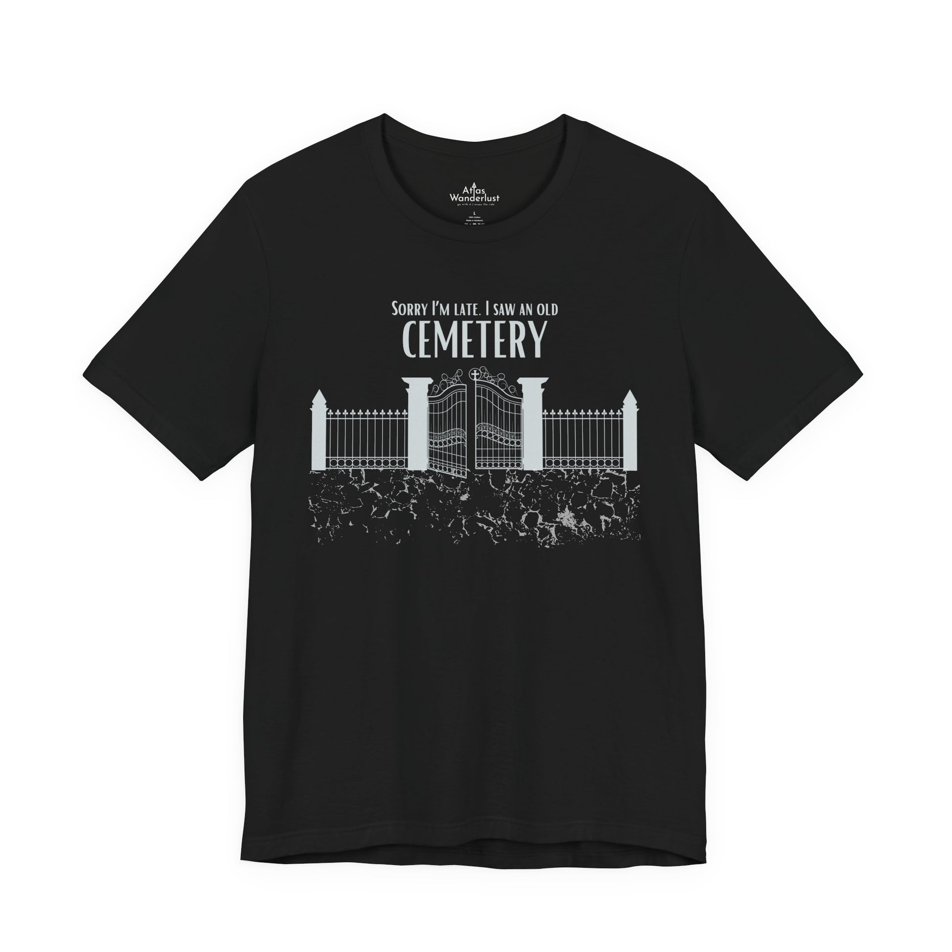 Cemetery Tee, Sorry I am Late. I saw a Cemetery Unisex Taphaphile T-Shirt