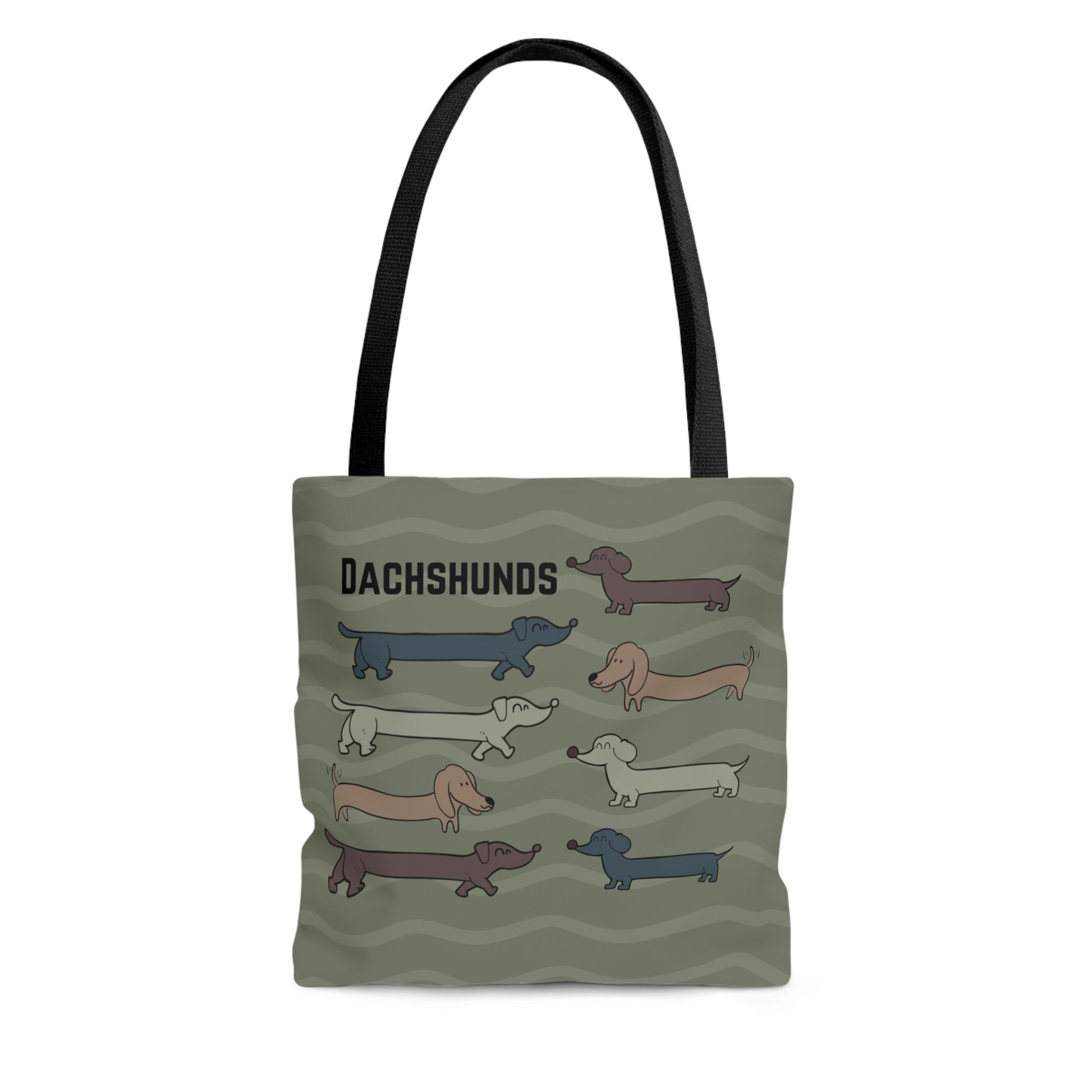Dachshunds are friendly companions that make great family dogs. Their loyalty makes them an amazing breed. Sport your love with this modern-art designed bag. Great gift for any dog lover!