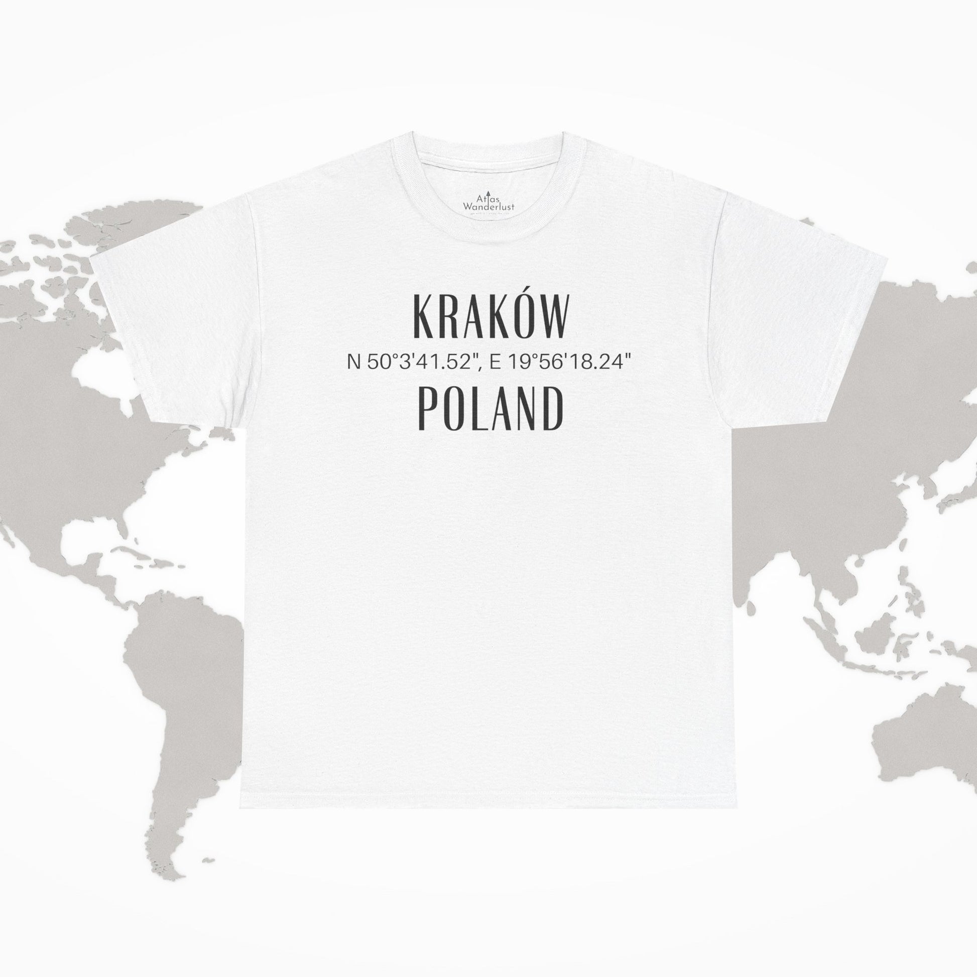 This Kraków t-shirt features the coordinates of the city printed on the front — N 50°3'41.52", E 19°56'18.24" — making it a unique and stylish addition to any wardrobe. Made from 100% cotton, the medium weight fabric offers both comfort and durability. The classic fit and true-to-size design ensure a comfortable and flattering fit for all wearerKraków, one of Poland’s oldest and most iconic cities, is a place rich with history, charm, and vibrant culture. From the medieval beauty of the Old Town and Wawel Castle to the lively cafés of the Jewish Quarter and the spirit of artistic expression found throughout the city, Kraków offers an unforgettable experience for every visitor.