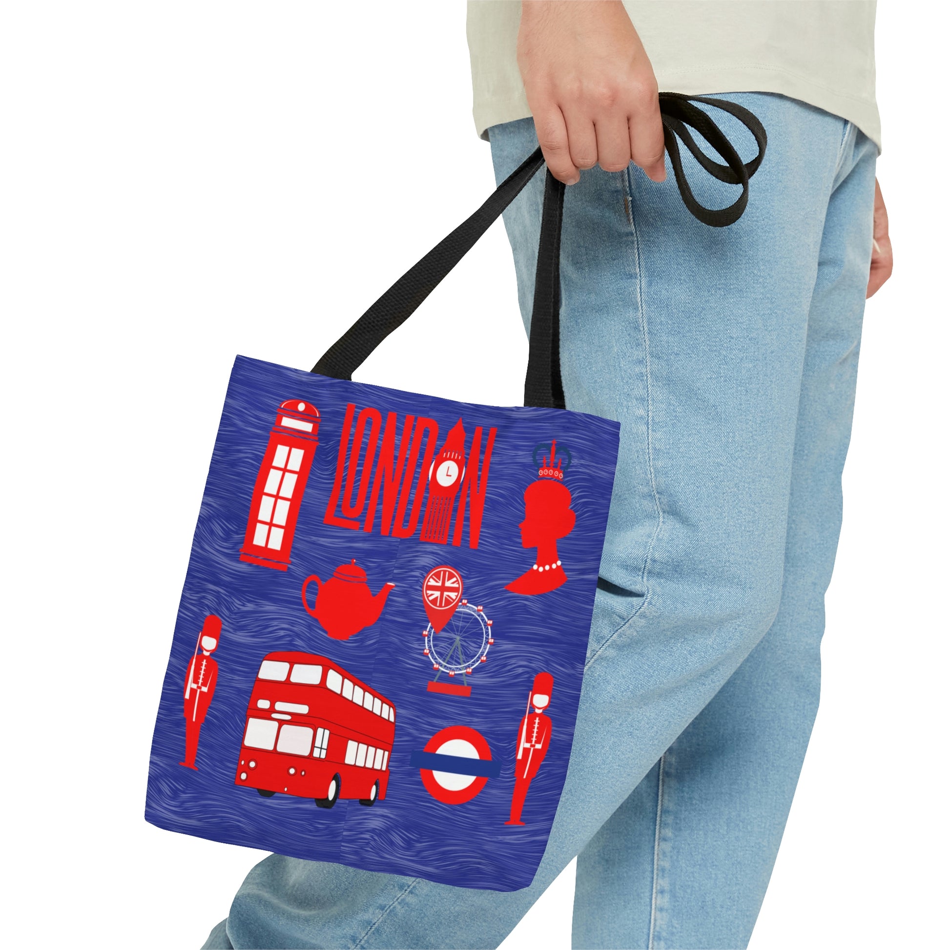 Everyone loves London! Show off your love with the custom-designed bag. The Underground, Double Decker Bus, Phone Booth, Queen Elizabeth
