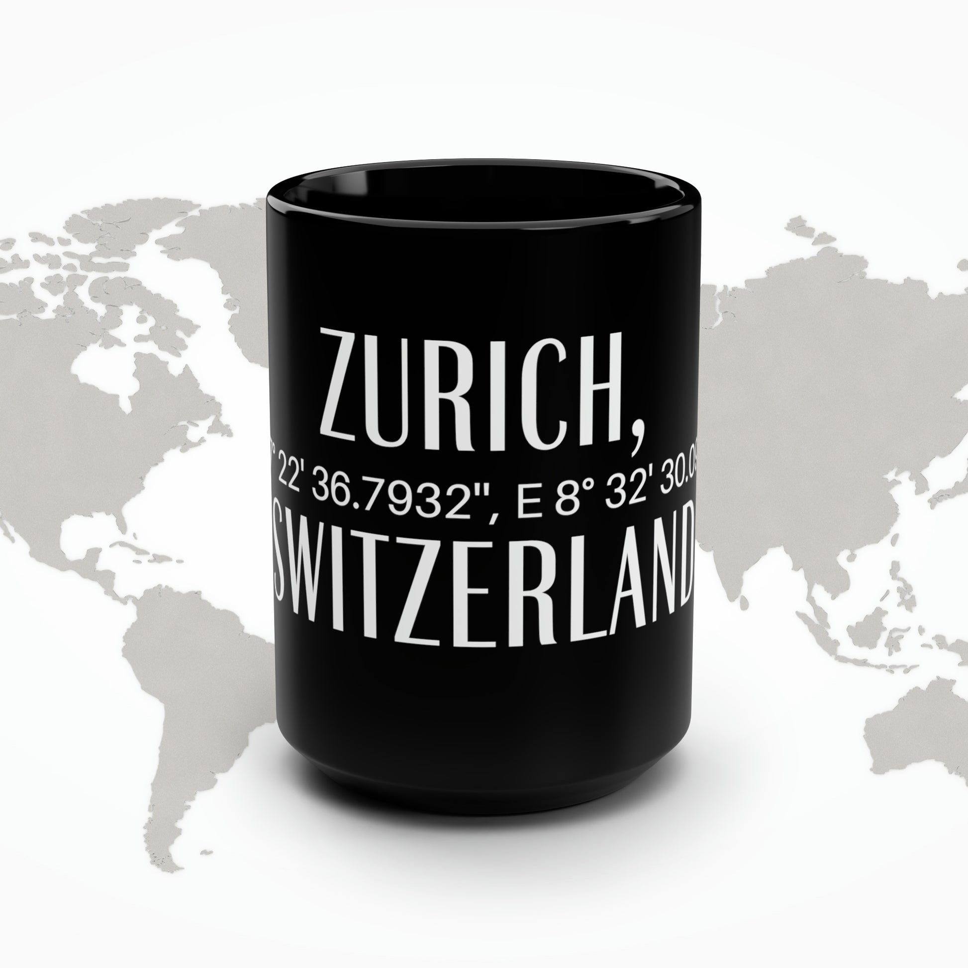 Zurich, Switzerland coordinates mug. Reminisce fond memories of the beautiful city while enjoying your favorite hot beverage. The Opernhaus, Swiss National Musuem, Lake Zurich, Food, etc.